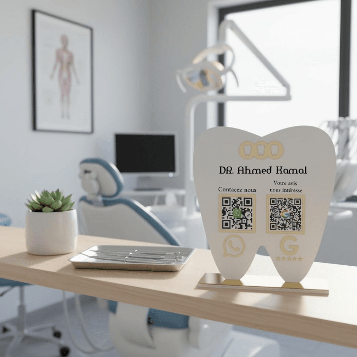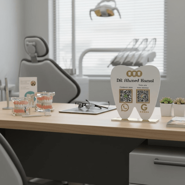 Panneau QR Code 3D dentiste personnalisé pour les dentistes, support QR Code en plexiglas de qualité supérieure avec liens de avis google , whatsapp, décoration idéale pour les cabinets dentistes modernes.